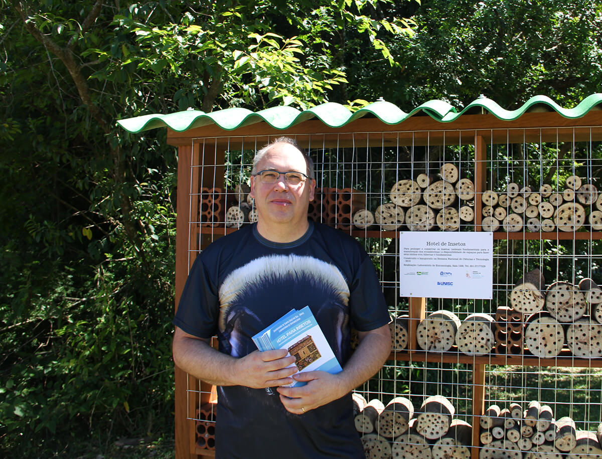 Unisc inaugura Hotel para Insetos, um projeto que auxilia na polinização de flores e no controle de insetos danosos para as plantas, dentro das atividades da Semana Nacional de Ciência e Tecnologia 2019.